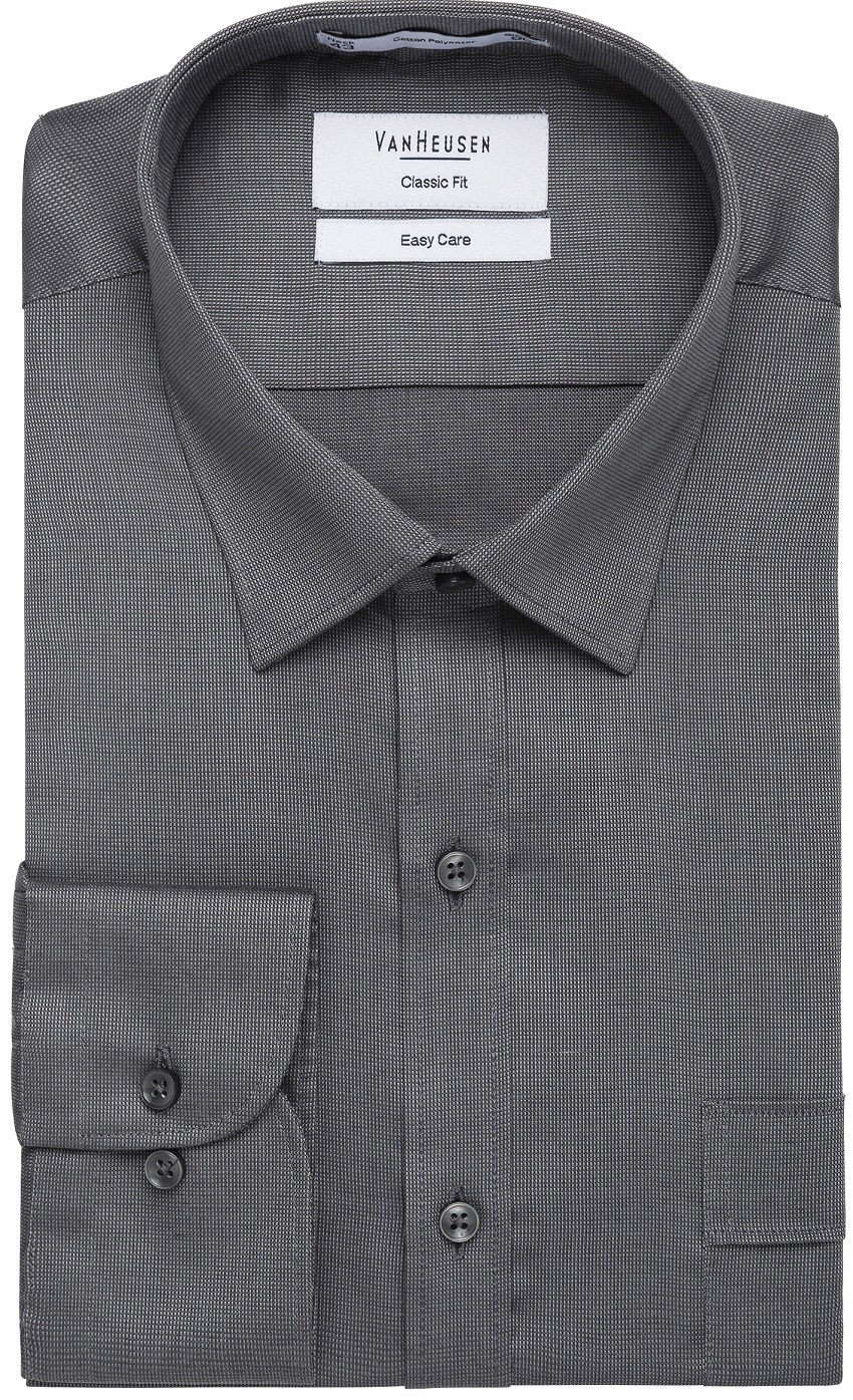 Easy Care Shirt with textured weave Cotton and Polyester. Features peak collar, chest pocket, double pleats over back shoulder.